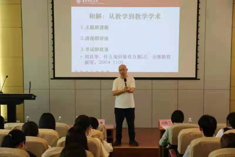 刘良华教授讲话风格幽默、富含哲理,他通过对自身在学术探索曲曲折折历程中的真实心境的剖析,勉励师生在探究内心世界、追求真理的道路上不畏困难、奋发前进。全场师生深受触动、受益匪浅!