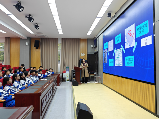 在“人工智能在生活中的应用”部分,袁博士通过生动的实例向学生们展示了人工智能如何在各行各业中带来变革。她讲述了智能图像识别在医疗中的应用、人工智能如何提升社交媒体的用户体验以及智慧城市建设中的数据分析与优化等内容。