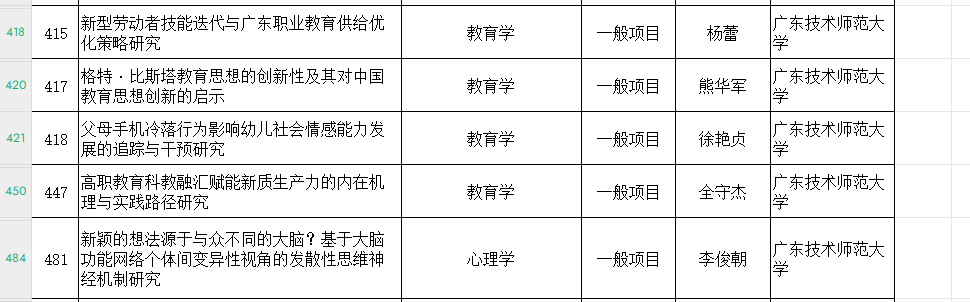 2025年4月25日,广东省哲学社会科学规划2025年度常规项目、三类研究专项拟立项名单公示。我院熊华军教授、徐艳贞教授、全守杰教授、杨蕾副教授、李俊朝副教授凭借扎实的学术功底和创新的研究视角成功入选,喜获一般项目资助。此次省级课题立项的优异成绩,是我院近年来大力实施人才强院战略、深化科研管理体制改革的重要成果。5项省级课题的成功立项,不仅是对我院教师科研能力的高度认可,更为学院学科建设注入强劲动力。未来,学院将以此为契机,持续总结经验、优化科研布局、强化团队协作,力争获批更多高级别项目,助推博士点建设!