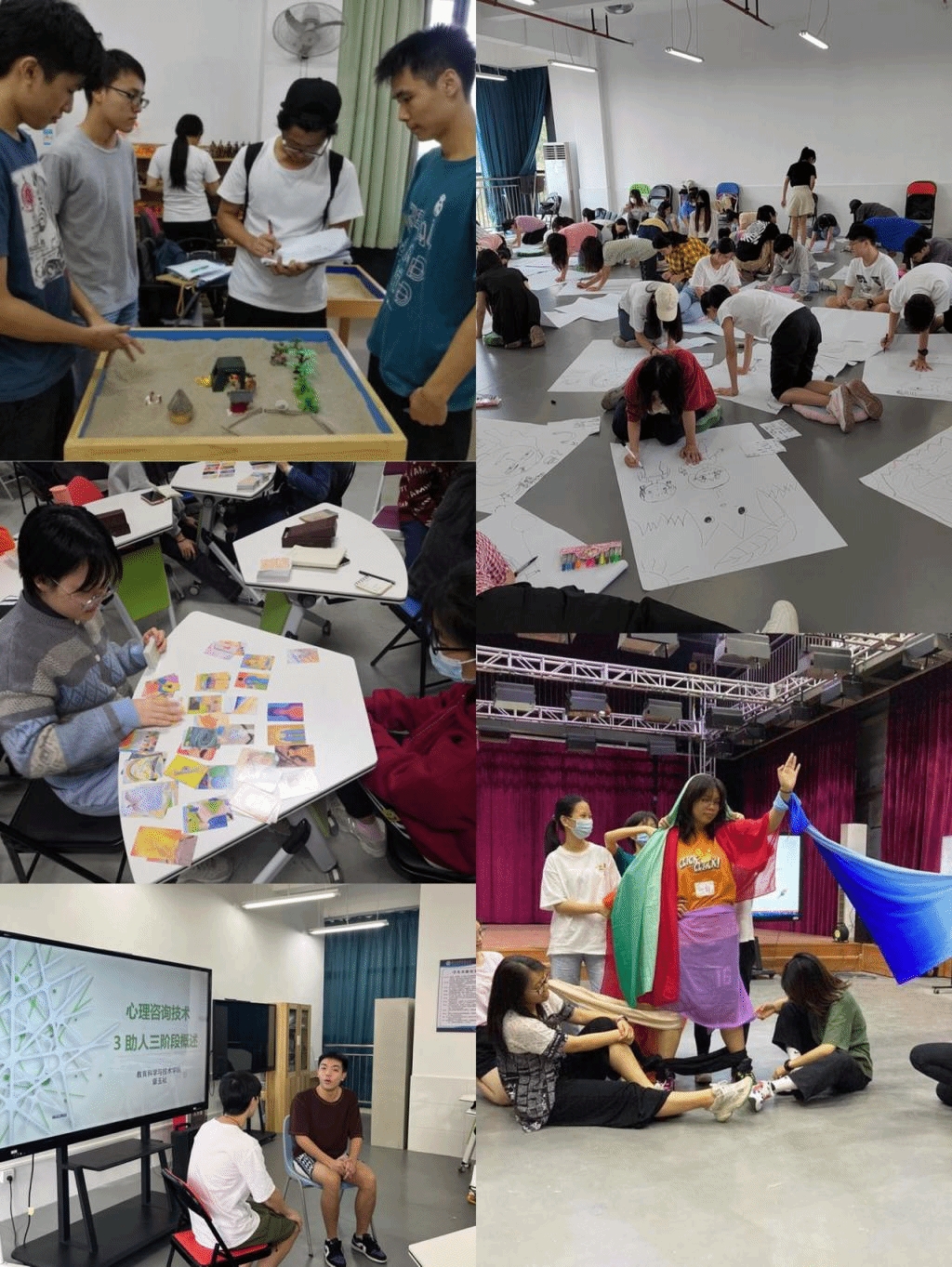 在传统的《普通心理学》《心理学史》《心理学研究方法》等传统理论课程的基础上,倡导以应用型课程为导向,创新性地开设了《箱庭疗法》《戏剧与心理健康教学设计》《潜意识图卡治疗技术》等极具特色并在职教课堂中广受欢迎的实操类课程。其中《戏剧与心理健康教学设计》多次受邀在广东省高校心理健康教育与咨询专业委员会学术年会中做分享。