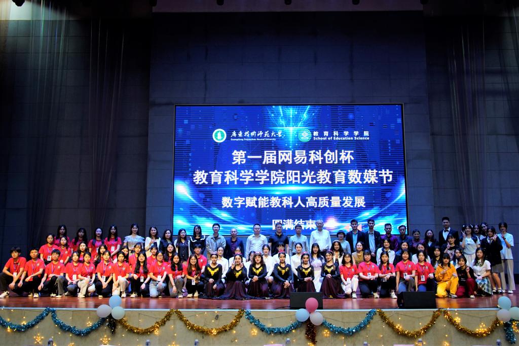 在全校上下深入学习贯彻党的二十大精神,落实广东省高质量发展大会精神,加快推进学校高质量发展之际,金年会3月19日晚上,以“数字赋能教科人高质量发展”为主题的“第一届网易科创杯”阳光教育数媒节在白云校区学生活动中心开幕。