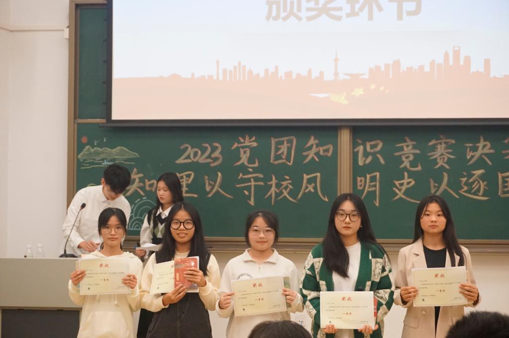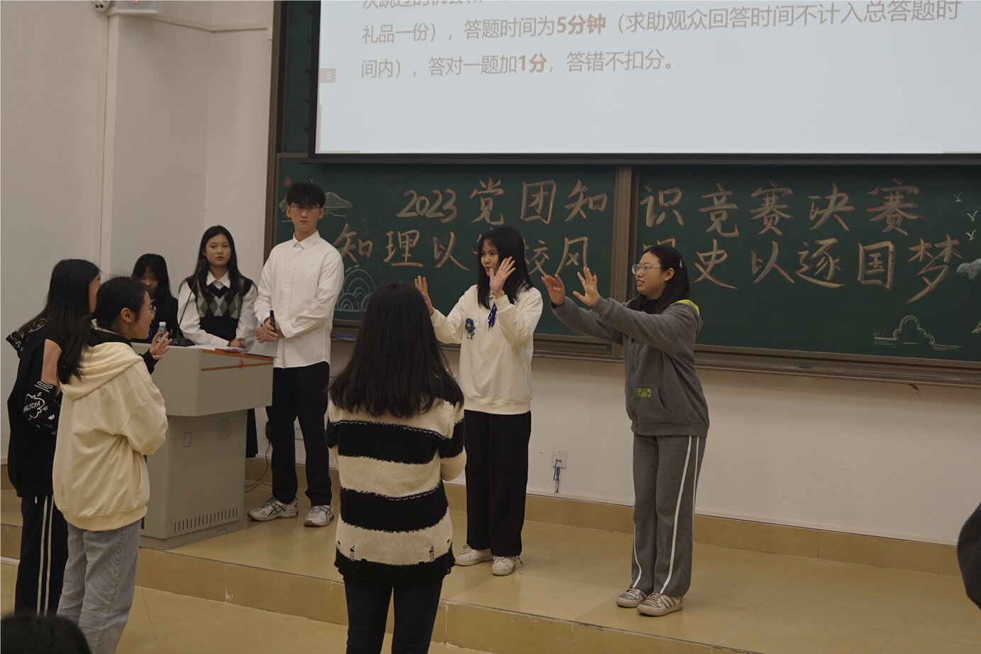 红星闪闪放光芒,党旗飘飘指方向。为深入学习贯彻党的二十大精神,引导广大青年知党史、感党恩、跟党走。金年会于3月28日晚18:30在博学大讲堂103举办了以“知理以守校风,明史以逐国梦”为主题的党团知识竞赛决赛。团委副书记刘超颖、团委执行副书记罗诗诗、朱志杰,学生会主席团成员余莺、管诗菡出席了本次活动。此次比赛由黄李旺、赵敏儿两位同学主持。