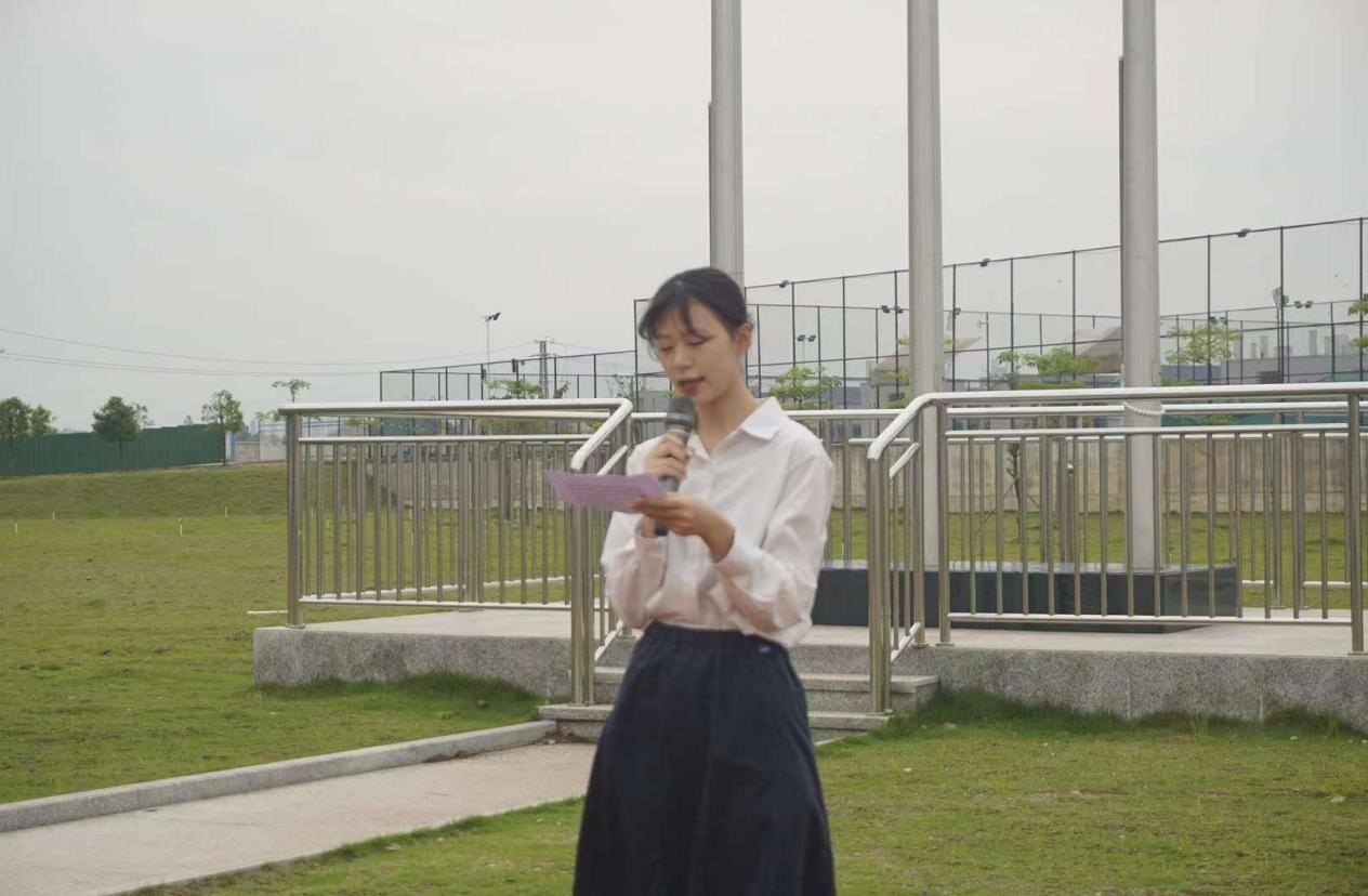 升旗仪式结束后,2022级学前教育3班王莹莹作为学生代表发言。她表示,青年始终是祖国的未来,时代掌握在青年的手中。她鼓舞教科院青年朋友们,不忘初心,牢记使命,不竭奋斗,共同谱写时代华章,为祖国的建设添砖加瓦,为实现祖国的美好未来贡献自己的青春力量。