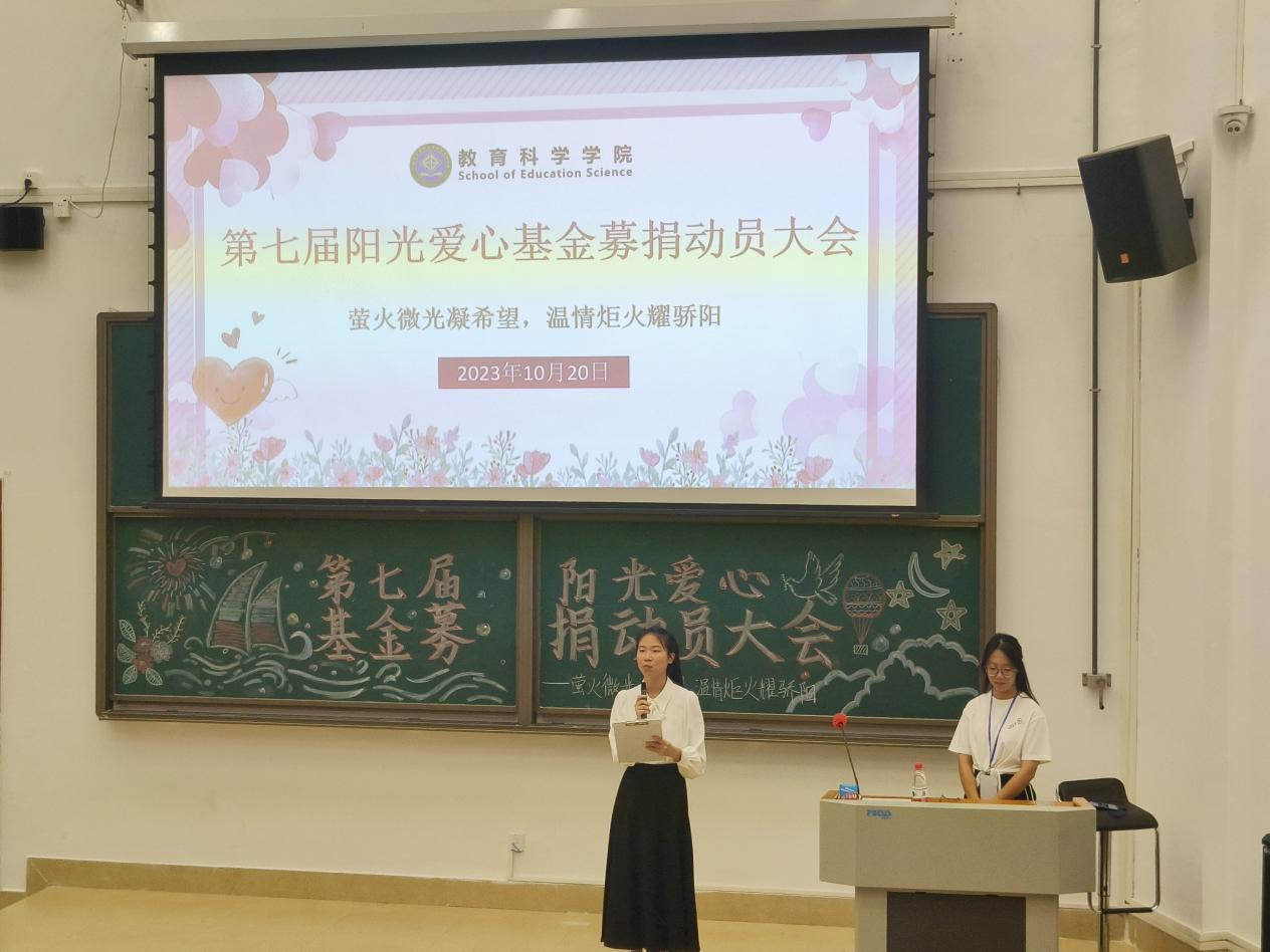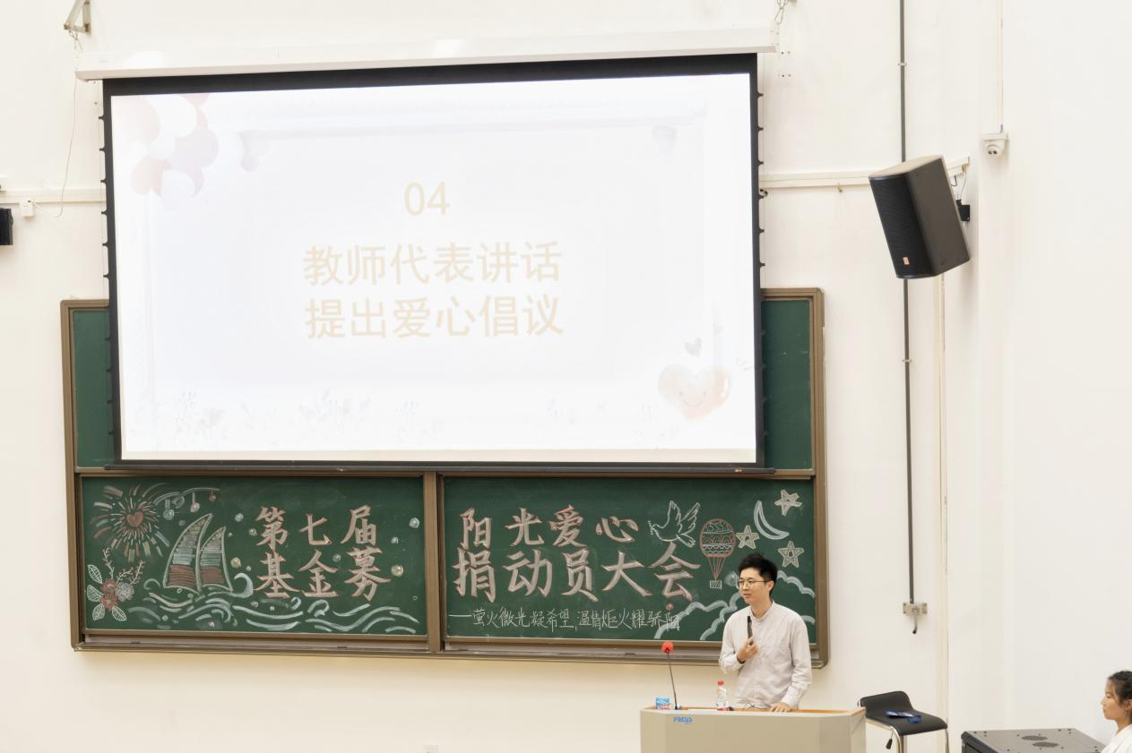 阳光行善方为贵,爱心募捐暖人心。为弘扬中华民族乐善好施、扶贫救济的传统美德,营造我院温馨有爱的人文环境,培养我院学子奉献友爱、互助进步的精神,金年会团委阳光青年志愿者协会于2023年10月20日在河源校区博学大讲堂202室成功举办了以“萤火微光凝希望,温情炬火耀骄阳”为主题的第七届阳光爱心基金募捐动员大会。出席本次大会的成员有辅导员黄立老师与23级各班团支书、组宣委员、助学委员和宿舍长。