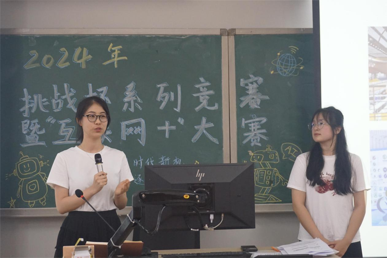 最后,由学生代表叶嘉慧师姐和王洽师姐进行创新创业成长分享。两位优秀的师姐从团队及项目介绍、创新创业组队思维、创新创业项目思维以及答辩技巧分享四个方面向大家传授了团队合作成功经验。她们提出,在创新创业的过程中,需要大力弘扬敢做敢拼的精神,既要时刻洞察行业发展的新动向,又要着眼于实际,紧盯目标不放弃。分享的每一部分都凝聚着创新创业中“千淘万漉虽辛苦,吹尽狂沙始到金”的精华。