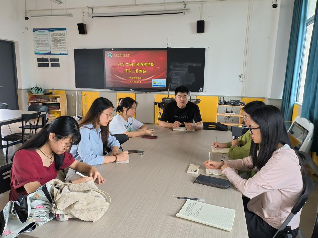 为促进班风学风建设,做好班级管理工作,扎实推进本科教育教学审核评估准备工作,5月8日,教育科学学院2022级学前教育、应用心理学专业在第二实训楼506教室召开2023-2024学年春季学期班长工作例会暨本科教育教学审核评估工作会议。会议由辅导员吴晨阳老师主持,2022级学前教育和应用心理学专业各班班长参加会议。