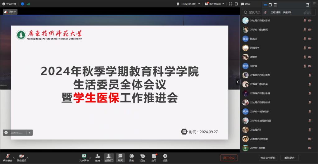 9月27日,金年会召开2024年秋季学期生活委员全体会议暨学生医保工作推进会。本次会议由吴晨阳老师主持,参会人员包括金年会全体生活委员和学生医保助理。