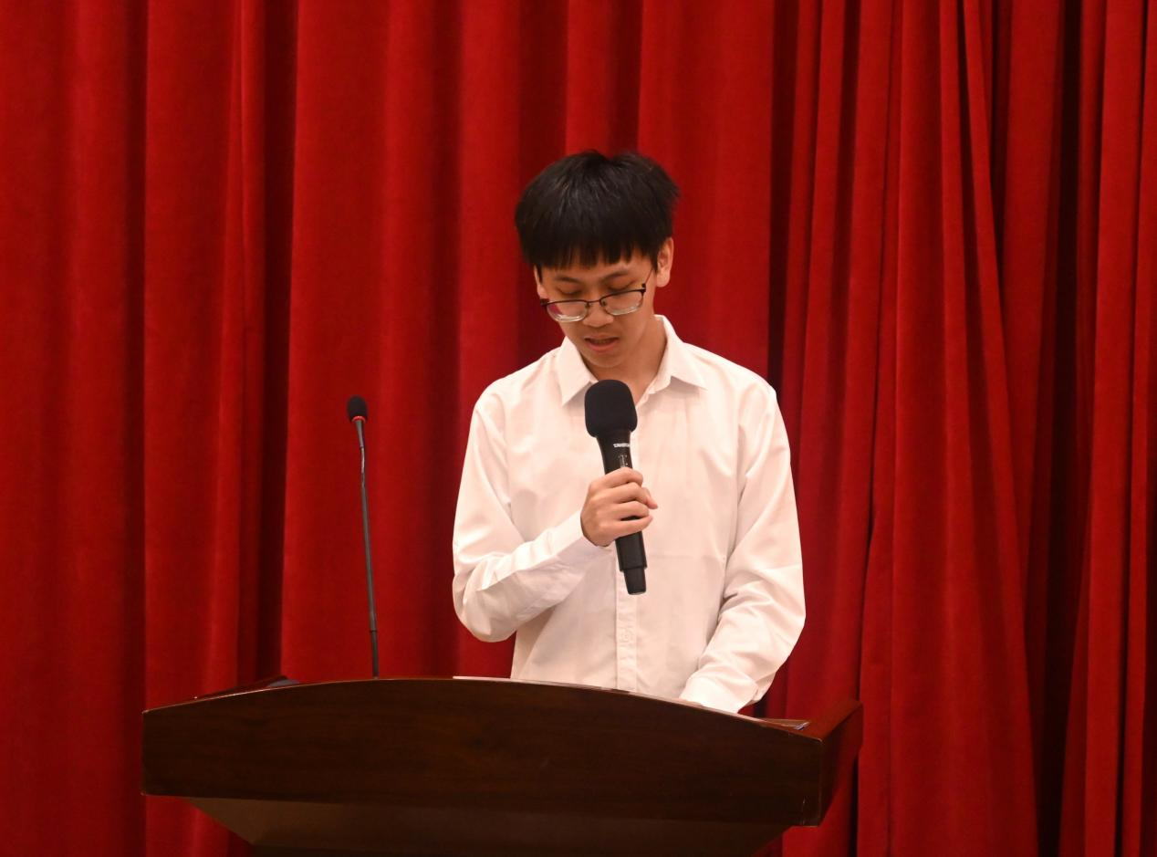 在监票人和计票人对票数结果进行统计期间,第八届学生会权益调研部负责人陈钟钒为大会做2023-2024学年年度团学财务报告,以数据化的报告,公开透明的向在场各位学生代表呈现团学收支情况。