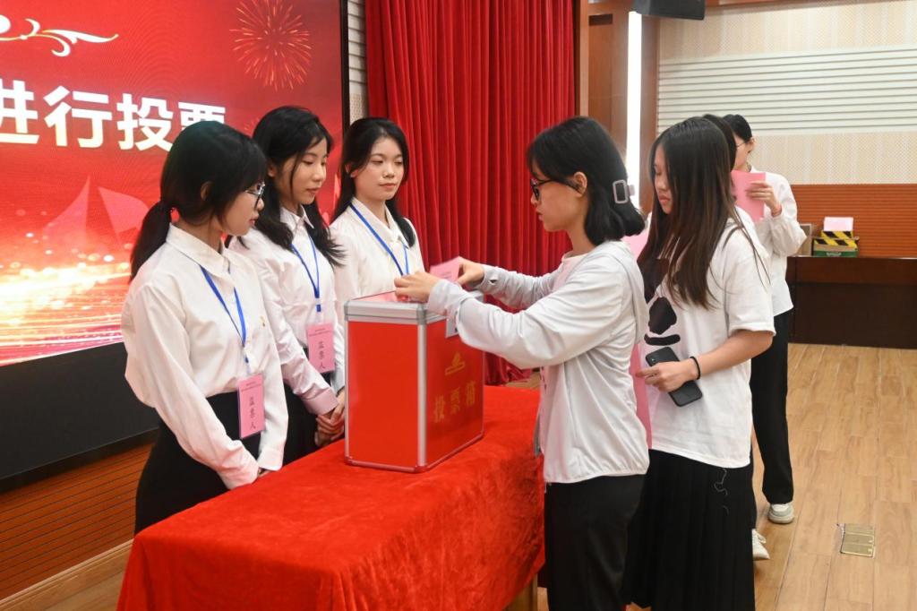 在所有候选人演讲结束之后,大会进入了投票阶段。在监票人的严格监督下,选举工作井然有序地展开。秉承公平、公正和公开的选举原则,确保了民主程序的严格执行。学生代表们依次上台,认真地将他们手中的选票投入票箱,参与到了新一届学生会委员会成员的选举中。