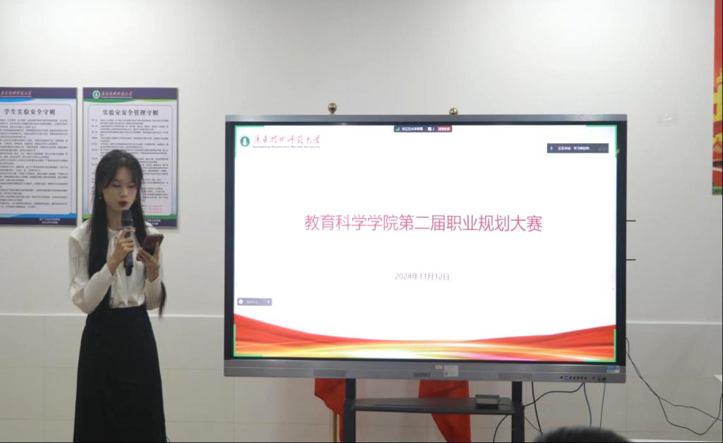 参赛选手们依次登台,结合生涯发展报告进行陈述与展示。基于专业背景、个人成长经历以及对自身性格的深入剖析,选手们全面阐述自身职涯规划。选手们清晰的逻辑思路和精彩的演讲不仅彰显他们对未来职业追求的执着,也让在场的评委和观众深刻感受到了教科学子充满激情、目标明确和规划清晰的精神风貌。
