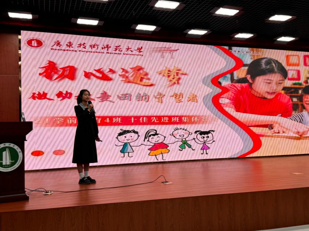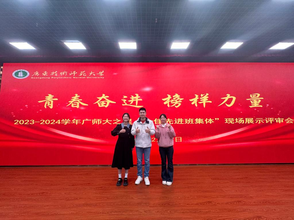 12月17日,广东技术师范大学2023-2024学年广师大之星“十佳先进班集体”评选大赛决赛在白云校区图书馆举行。经过现场展示,我院2021级学前教育4班从各学院共20支参赛队伍中脱颖而出,荣获2023-2024学年广师大之星“十佳先进班集体”荣誉称号。