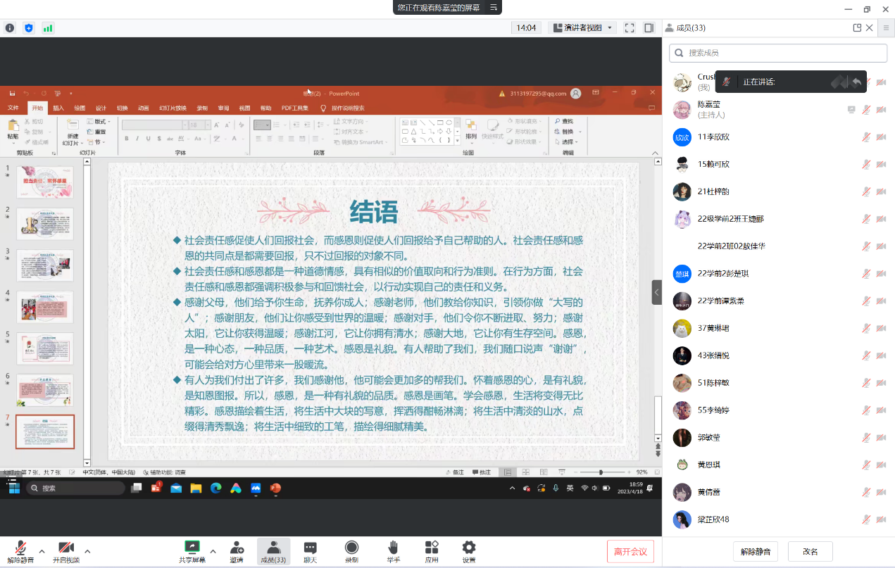 为进一步加强我院学生的德育教育,培养以德立身、自强不息的新时代大学生,我院勤工助学服务中心于2023年4月18日组织全院各班助学委员就“社会责任感”主题开展主题班会。本次会议中,各班助学委员分别从社会责任和社会责任感的含义、重要性、缺失现状、缺失原因及增强自身社会责任感的相关途径五个方面进行展开,进一步强化了同学的责任意识,不仅有利于同学将社会感恩意识内化于心、外化于行,还有利于落实相关资助工作精神,打造实用型人才,为加强学院校风、学风建设奠定了基础。