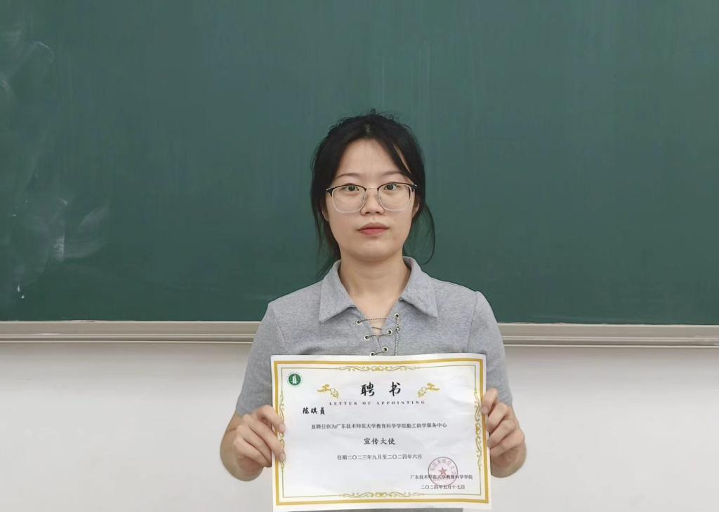 在会议上,张琳老师介绍了宣传大使的职责和工作安排,并宣布聘用陈琪贞同学为宣传大使。陈琪贞同学对当选表示诚挚感谢,并展现了对未来工作的信心。最后,张琳老师为陈琪贞同学颁发了“宣传大使”聘书。这次宣传大使聘任会议为后续助学政策及助人思想宣传活动奠定了基础,有助于助学政策的更好实施。