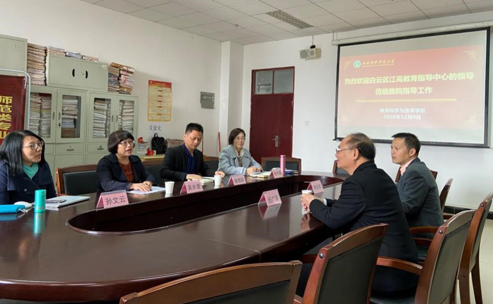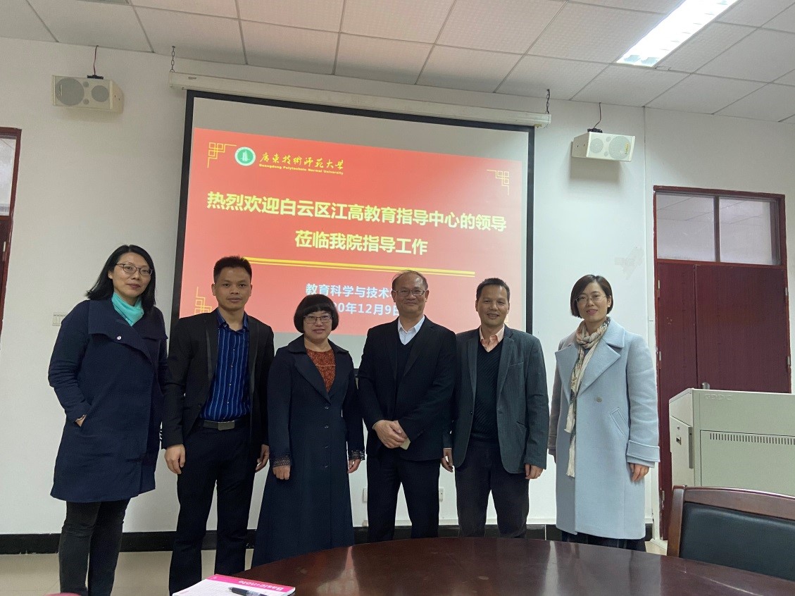 2020年12月9日上午,白云区江高教育指导中心应邀来我院进行座谈交流,交流会在白云校区一教315会议室进行。江高教育指导中心伍广溪主任、分管人事和师资的陈练通老师,以及我院的吴水爱副书记、谢德新副院长、学前教育系主任孙文云副教授、应用心理学系张玲燕副教授参加会议,会议由谢德新副院长主持。