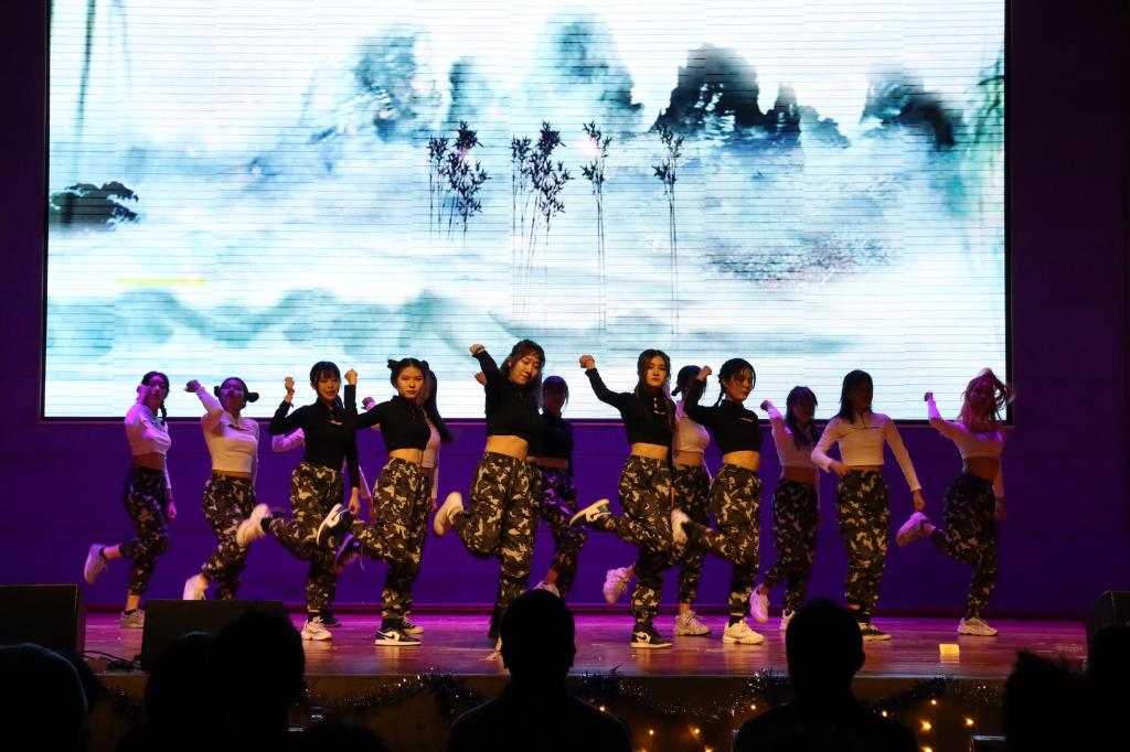 又一轮激动人心的抽奖环节过后,四重奏《英雄之路》与街舞《11.28shots》充满青春活力的舞姿让观众们赞叹连连。晚会在法知歌队带来的歌曲串烧中逐渐走向尾声,最后在团学人员合唱的《我和我的祖国》的歌声中圆满落幕。