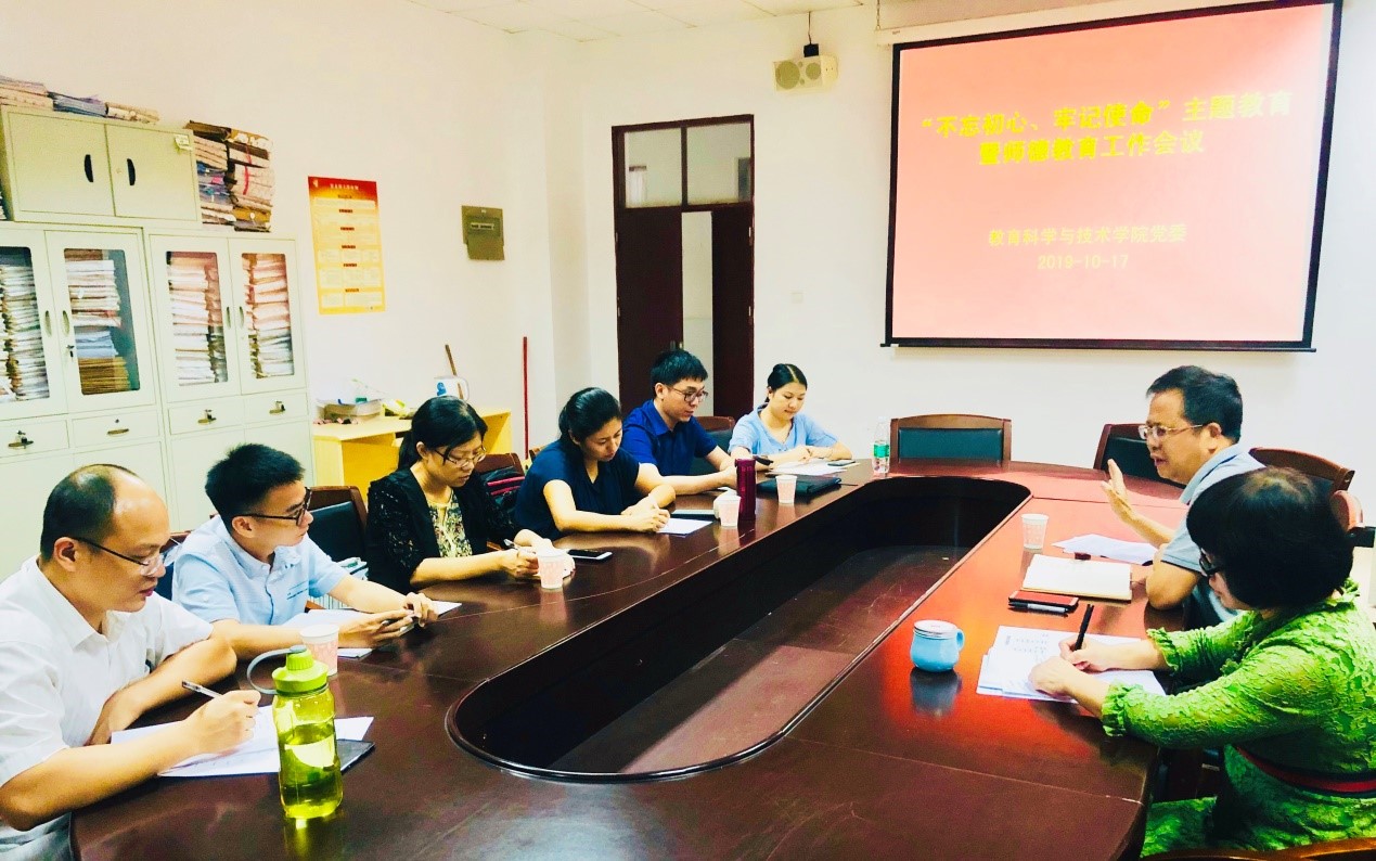 根据学校“不忘初心、牢记使命”主题教育方案和学校党委《关于开展2019年师德建设主题教育月活动的通知》要求,为进一步推进师德师风建设工作,提高教职工的思想政治素质和职业道德修养,建设一支师德高尚、业务能力强的教师队伍,10月17日下午,教育科学与技术学院党委,在白云校区一教315室召开“不忘初心、牢记使命”主题教育暨师德教育工作会,学院党委书记林启词、副书记吴水爱和近两年新进全体博士参加了会议。