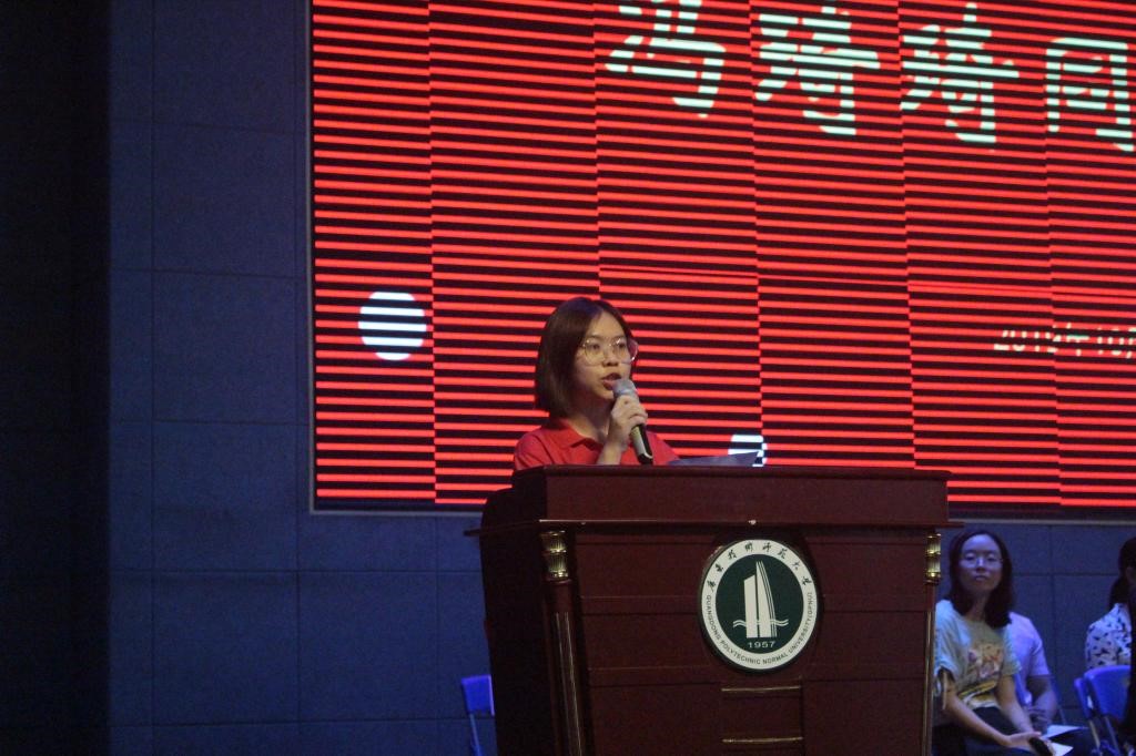 大会第四项,老生代表院学生会主席冯琦琦同学代表全体教育科学与技术学院学生发言。她结合个人成长经历给师弟师妹分享了许多珍贵有用的经验,同时也叮嘱同学们要珍惜时光,勤奋好学、积极进取,更好地展现广师大教科学子的风采。