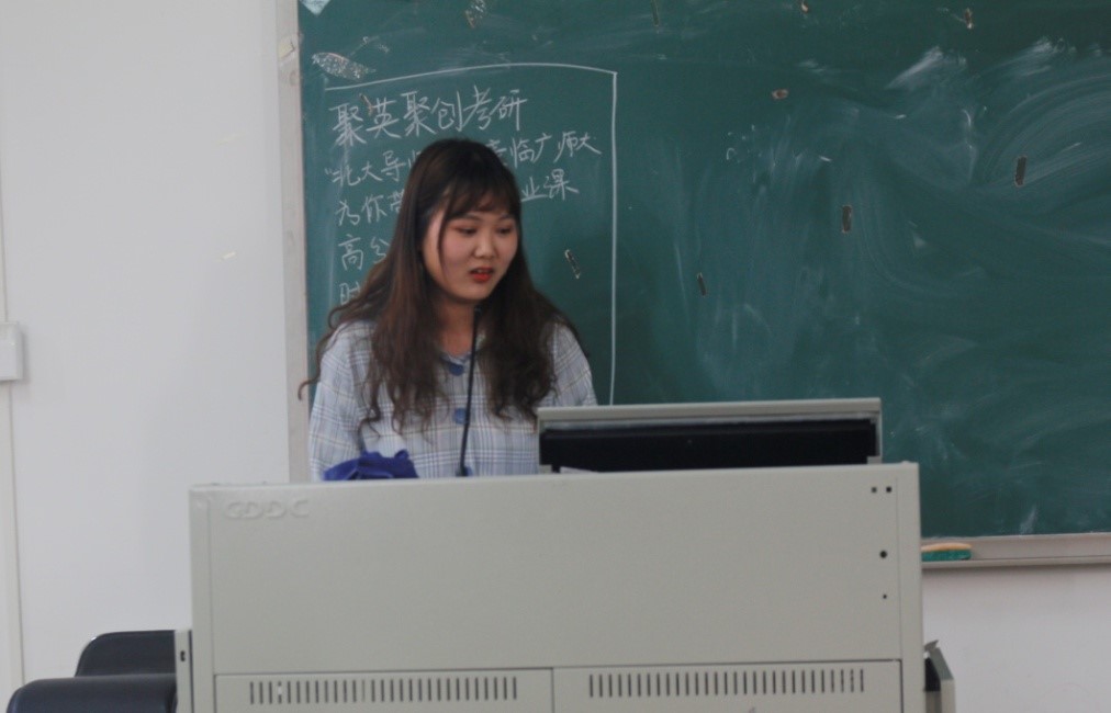 最后,2018届毕业生陈锦同学分享个人考研经历。她分出了几个步骤来讲述了自己当时备考的方法。也强调每个人都应该在决定之后一定要付出自己努力去达成自己定下的目标,即使在中间会受挫坚持不下去,也要学会调节自己的情绪。在分享最后,师姐衷心祝愿考研的同学们都可以如愿以偿。