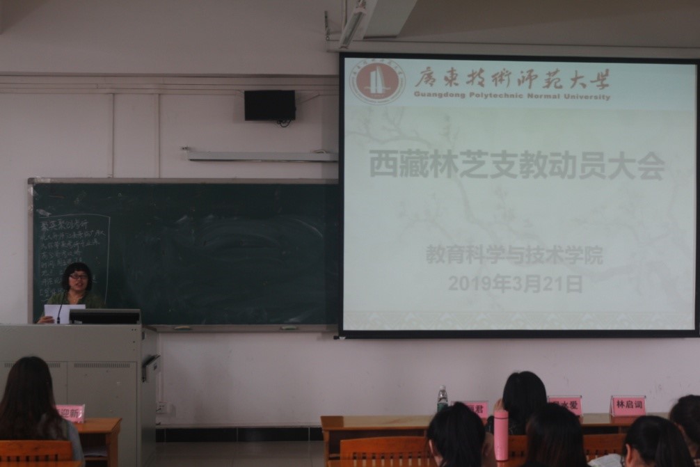 2019年3月21日下午,我院在白云校区第三教学楼214课室举办了西藏支教分享会暨考研动员大会。学院党委吴水爱副书记,陈丽君副院长,辅导员张琳老师,辅导员热依拉老师, 2018届毕业生陈锦同学和2015级学前教育专业章迎新同学出席本次会议;我院2016级,2017级,2018级同学积极参加本次会议。今天的会议分为两个部分。
