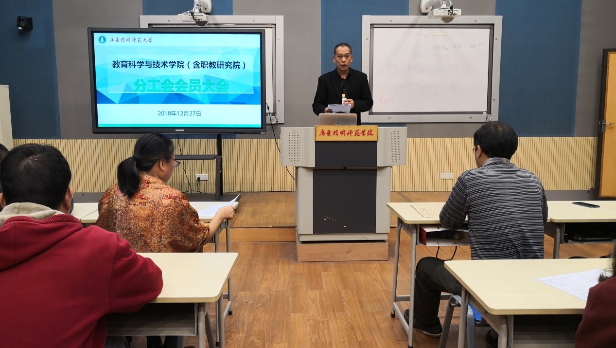 12月27日,在本部实验楼108召开教育科学与技术学院(含职教研究院)分工会全体会员大会,主要议程是传达关于筹备召开广东技术师范大学第七届教职工代表大会暨第八届工会会员代表大会第一次会议的通知。选举产生教育科学与技术学院(含职教研究院)分工会,参加广东技术师范大学第七届教职工代表大会暨第八届工会会员代表大会第一次会议的代表人选,会议由教科院党委委员、分工会常锋峰主席主持大会。
