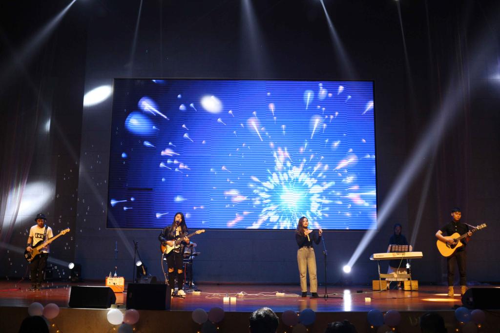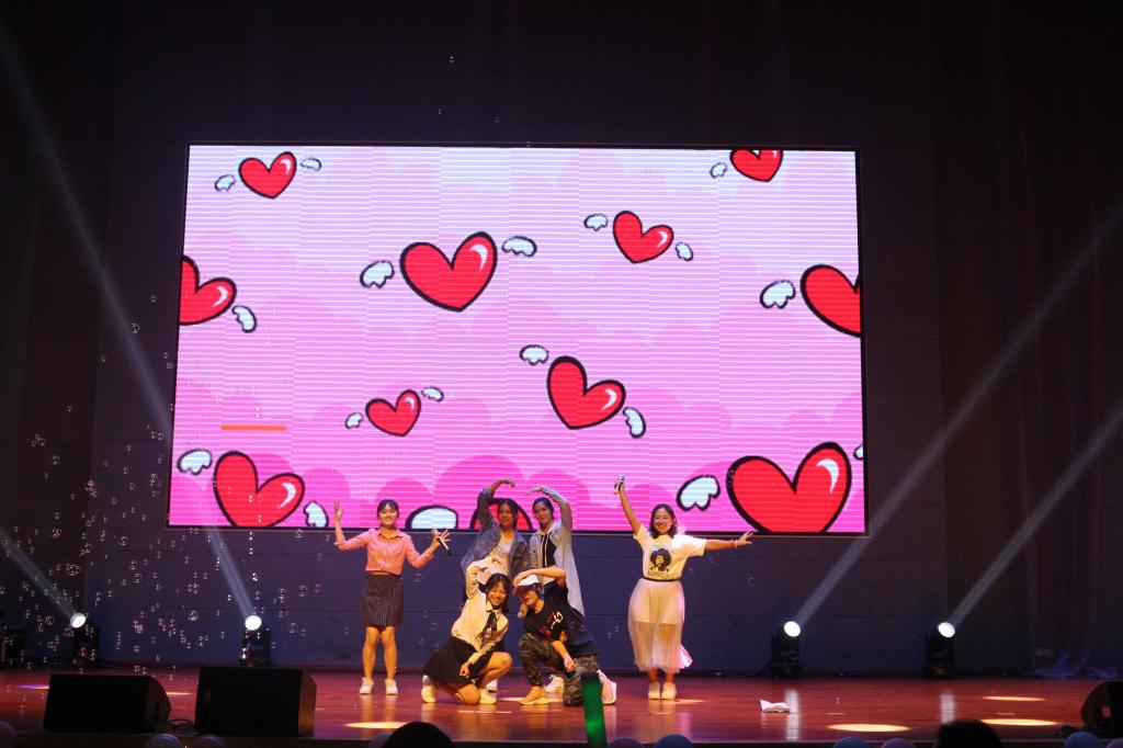 晚会由乐器队的几位青年带来的节目《星空》中拉开帷幕,他们在《星空》下诉说着面对未知未来的勇敢,镁光灯将整个舞台照得如同梦幻一般。现场观众迅速融入到了晚会的欢快气氛中,随之欢呼鼓掌。随后,院舞蹈队的舞蹈《V》、18级数媒师2班的《cups有点喜欢你》、16 级学前2班的充满童年回忆的《最美的光》与歌舞表演《恋爱歌舞剧》等同学们精心准备的节目一一登场亮相。这些节目涵盖了歌曲、舞蹈、歌舞剧等方面,充分展现了当代大学生应有的活力与朝气、团结进步,在初入校园后褪去稚气,起航新梦想,让青春绽放出精彩的光芒。