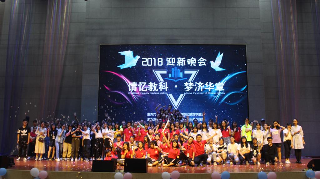 在不断的掌声与喝彩声当中,节目逐渐走向了尾声,但惊喜总是突然来临的,屏幕上的18级助班们用他们真诚的话语向新生们表达了他们的深厚情感与对新生们未来的祝愿:愿18级新生们踏着青春的步伐,不断学习进取,扎实理论功底,创新方式方法。希望他们不负习近平总书记对青年学子的殷切嘱托,爱国,立志,求真,励行,踏着新时代的春风,为实现中华民族的伟大复兴的中国梦不懈奋斗。本着教科之心,奏响梦济华章。最后晚会在我院团学所有工作人员的大合唱《夜空中最亮的星》中圆满拉下了帷幕。