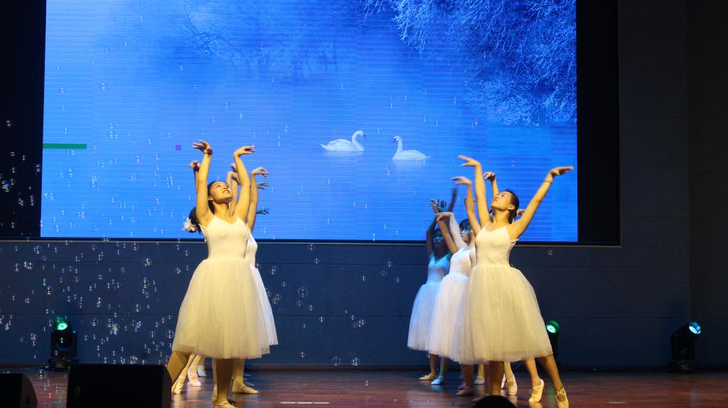 随着激动人心的抽奖环节而来的是配合默契的乐队演唱的《爱就对了》,这首摇滚情歌把全场气氛推向了高潮;紧接着是引得笑声四起但结尾却又能引起观众对生活的思考的默剧《诊室风波》及各具特色的韩舞《Dance the night away》、民族舞《喀什的姑娘》与爵士舞《L&F》的呈现,可谓精彩纷呈。舞台上的完美呈现,是每一位表演者幕后辛苦训练的体现,这是中国梦实现的缩影。一代代青年人的刻苦训练,不懈奋斗,这是中国梦实现的必经之路。