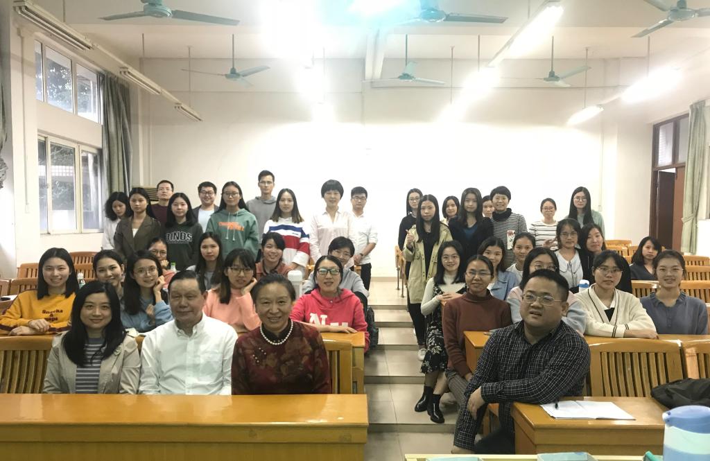 2018年11月29日下午,教育科学与技术学院在二教203课室举行了“基于核心素养体系的教育技术学专业课程改革”的专题讲座,此次讲座邀请了华南师范大学教育信息技术学院的徐福荫教授,参加讲座的有教育科学与技术学院陶红院长、陈丽君副院长、吴天生副院长、赵玉教授以及各位老师和18级全体研究生。
