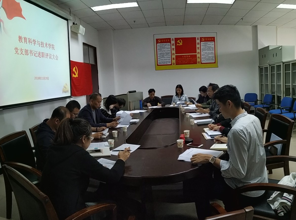 为认真学习贯彻党的十九大精神,坚定不移推进全面从严治党,加强党的基层组织建设,2018年11月29日下午,教育科学与技术学院党委在白云校区一教315会议室召开党支部书记述职评议大会。校党委常委、督导组成员、民族学院党总支书记黄圣城应邀出席活动。学院党委书记林启词、党委副书记吴水爱以及教工、本科生和研究生各党支部书记参加述职大会。会议由林启词书记主持。