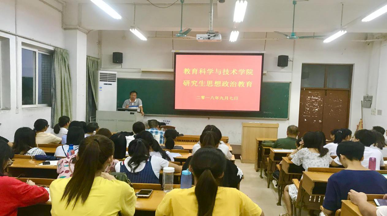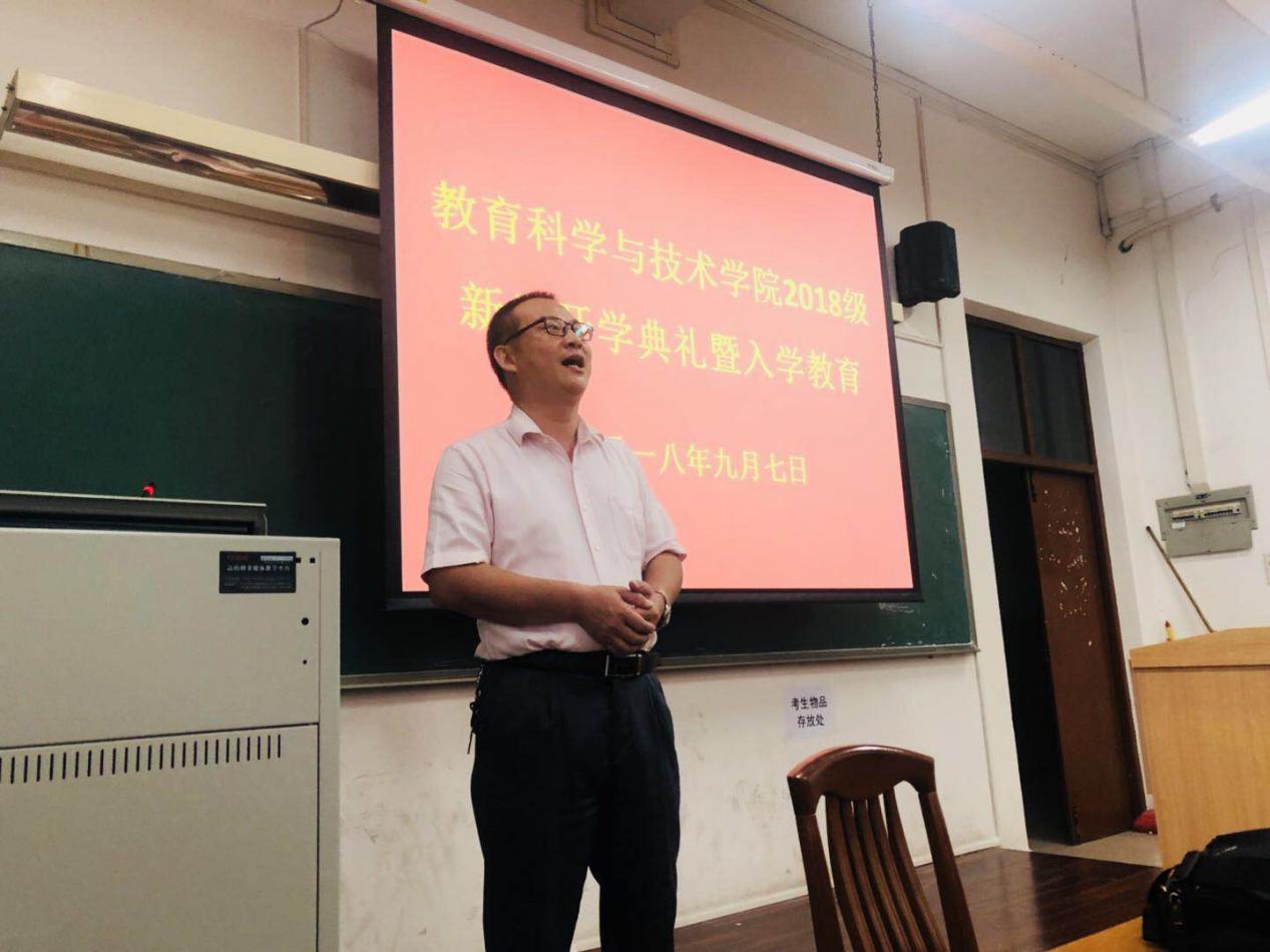9月7日下午,教育科学与技术学院于二教503举行了2018级全日制研究生新生开学典礼暨入学教育。教科院党委书记林启词、院长陶红、副院长陈丽君、任平、吴天生、党政办公室主任常峰峰、研究生教育教学部主任谢德新以及导师代表曹育红、李宁出席了开学典礼;研究生教学秘书李存园、李伶俐、辅导员梁爽,90余名全日制研究生参加了典礼。