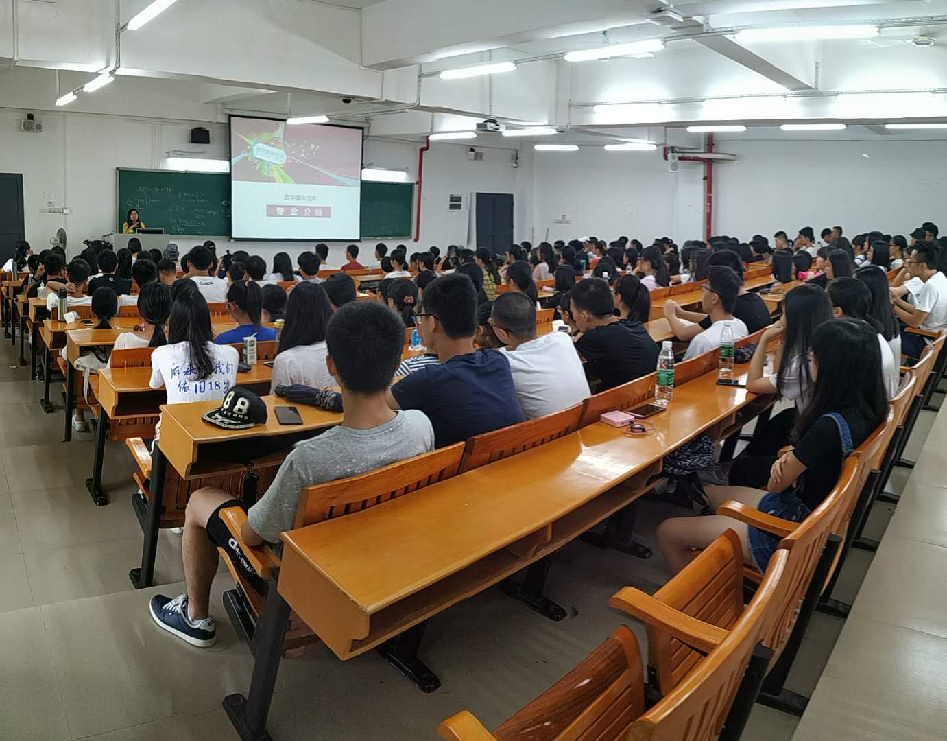 数字媒体技术专业介绍会于9月8日在白云校区三教414如期举行,170位新生怀着强烈的好奇心早早来到教室等待。会议主要介绍数媒专业的专业概况、定位目标、教师队伍、教学资源、培养过程、学生发展、质量保障、专业特色八大部分的内容,同学们亦在讲解过后举手提问,均得到满意的答案。