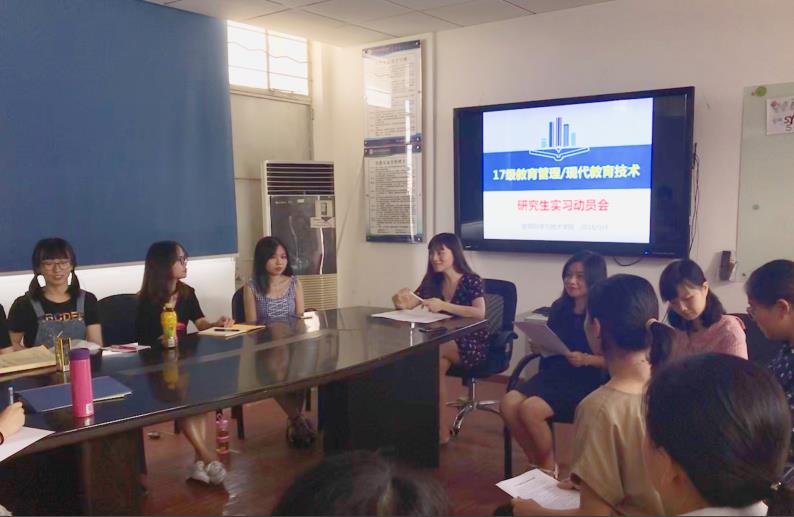9月4日下午2点,教育科学与技术学院在实验楼502召开17级现代教育技术及教学管理专业研究生教育实习动员大会。