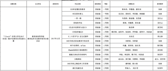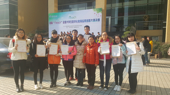 2017年12月8日至12月10日,我院学生在首届“iTeach”全国大学生2017(首届)数字化教育应用创新大赛中荣获一等奖2项、二等奖5项、三等奖7项的优异成绩。同时,我院在该大赛组织工作中表现优异,荣获优秀组织奖。
