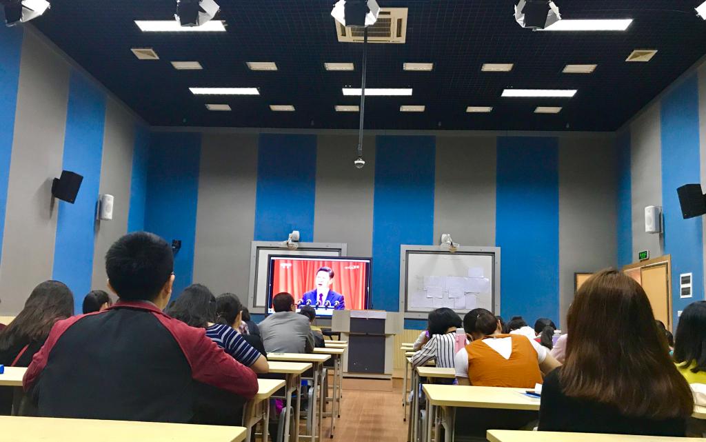 10月18日上午9点,教育科学与技术学院党政班子成员与部分师生在校本部实验楼108室集中收看十九大开幕会盛况,聆听习近平总书记代表十八届中央委员会向大会作的报告。广大师生员工也通过电视、网络、广播等不同形式收看、收听了十九大开幕会实况。