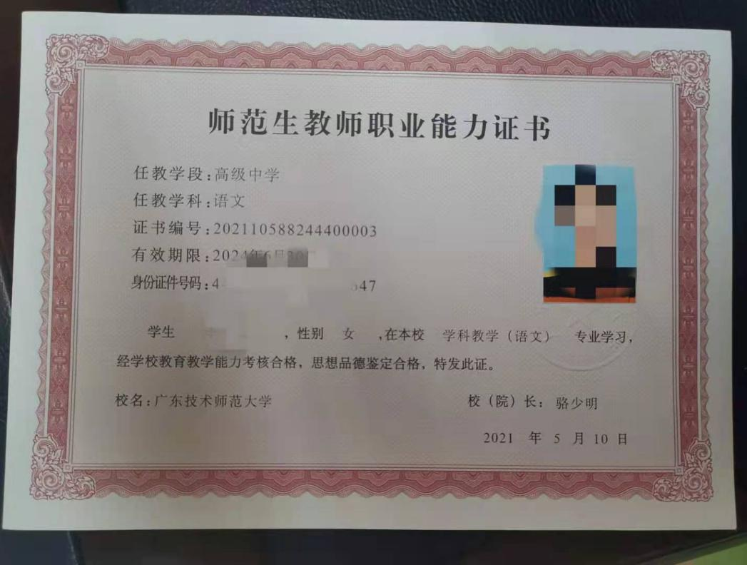 2021年5月,通过教学能力测试笔试和面试考核的25名考生顺利获得《师范生教师职业能力证书》,证书获得者可按程序申请认定教师资格证。