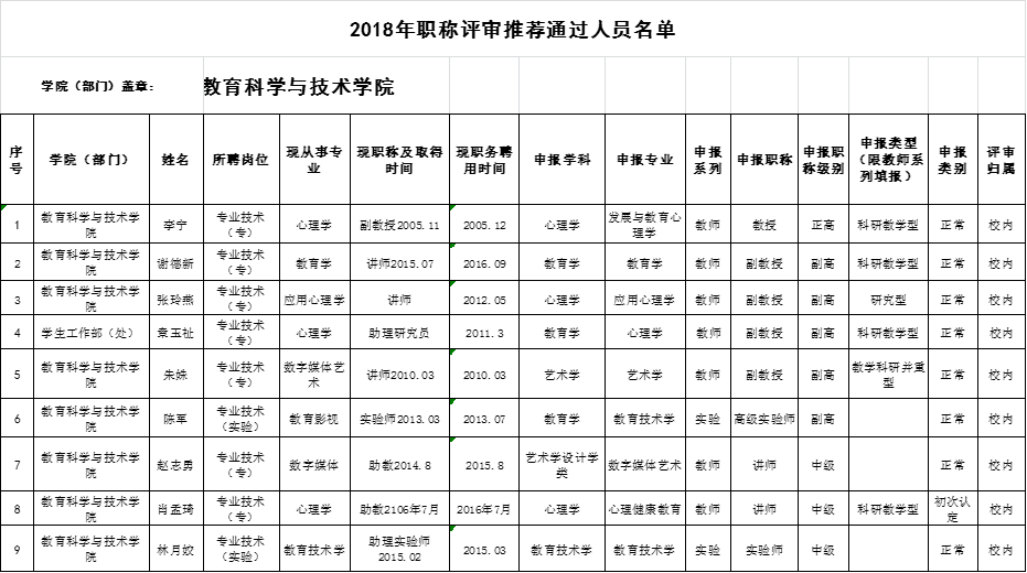 教育科学与技术学院职称评审工作小组