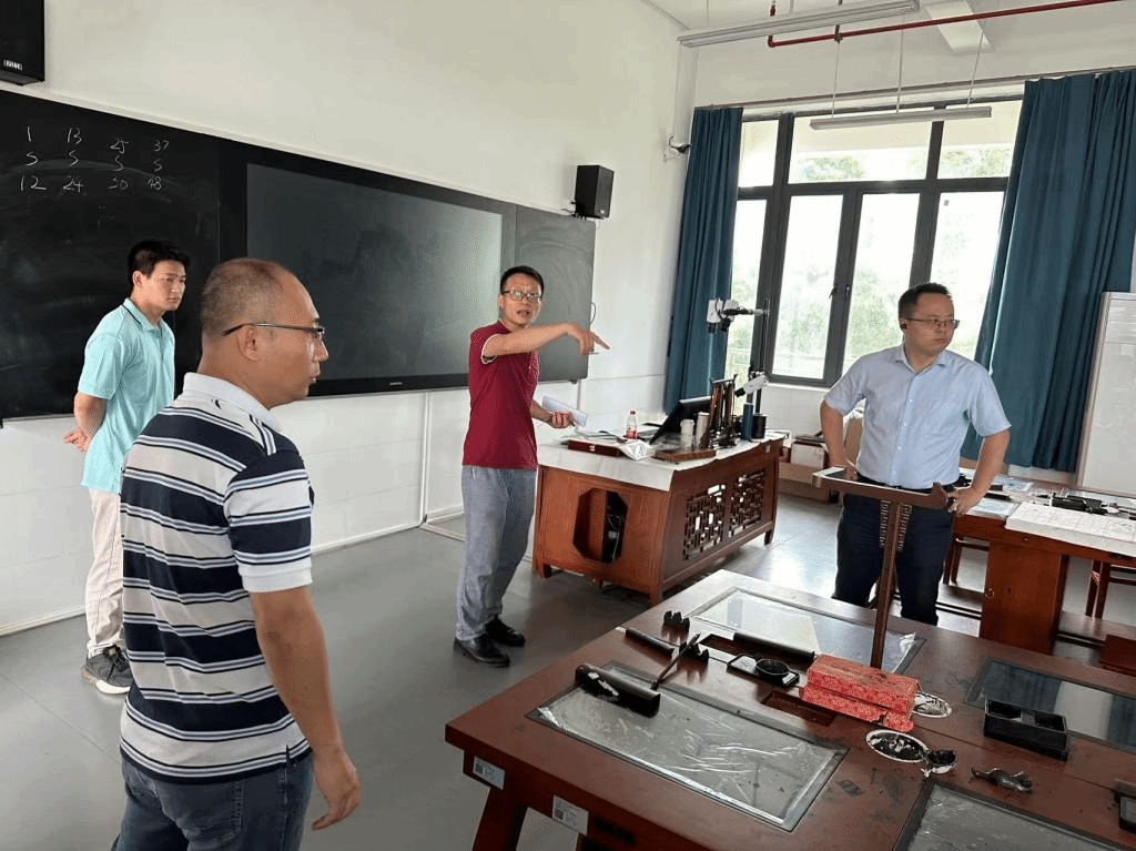 为迎接教育部专家入校考查,完成我校英语及汉语言文学两个师范类专业认证工作,5月5日上午冯帮副院长亲自带队进行专家考查模拟演练工作。师范技能训练中心、数字媒体实训中心主任及实验员共同参与此次演练。本次演练主要模拟专家进场路线及中心内容介绍。许成果主任对师范技能中心总体情况、微格实训室、远程观摩室、三笔字实训室及智慧教室进行了简要介绍,陈军主任主要介绍职教课程开发综合实训室。