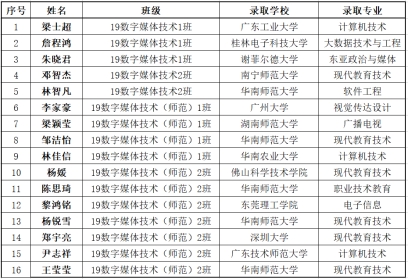 在2023年研究生招生考试中,数字媒体技术系学生取得了优异成绩,共有16人被成功录取,再创历史新高。录取学校包括广东技术师范大学、广东工业大学、华南师范大学、华南农业大学、湖南师范大学、广州大学、深圳大学、桂林电子科技大学、谢菲尔德大学等,所就读专业包括计算机技术、大数据技术与工程、电子信息、东亚政治与媒体、广播电视、软件工程、视觉传达设计、现代教育技术、职业技术教育等,其中1人境外升学,就读世界百强名校英国谢菲尔德大学。