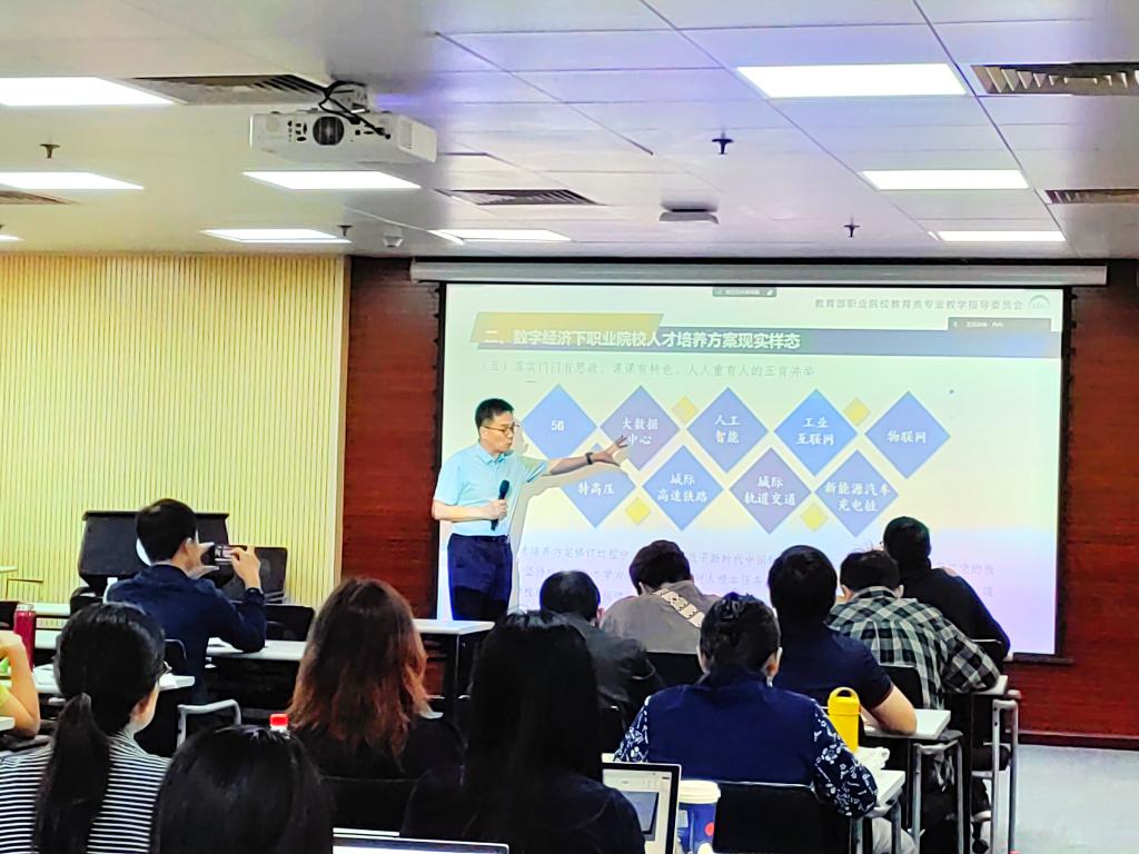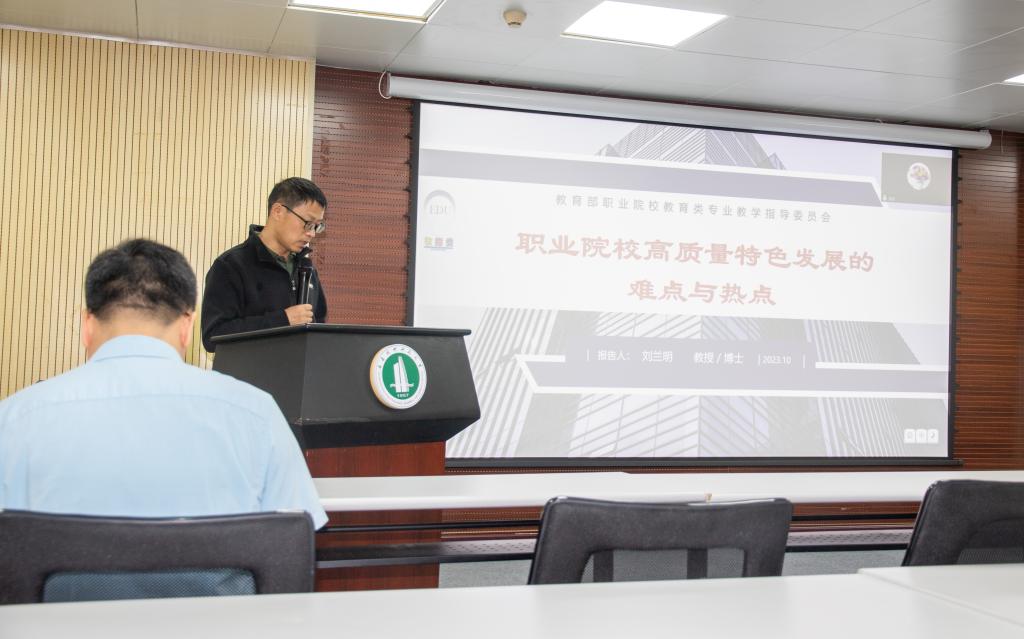 2023年10月10日上午,教育部职业院校教育类专业教学指导委员会主任,中国职教学会教学创新工作委员会专家指导组专家,北京市首届“长城学者”,国家职业教育研究院研究员、特聘专家,北京市高等学校教学名师、优秀教学团队负责人、高等学校学术创新团队负责人,国家精品课程负责人,国家级教学成果一等奖二等奖获得者,北京市教学成果奖特等奖获得者刘兰明教授应邀为我院师生作题为《职业院校高质量特色发展的难点与热点》学术报告。报告由熊华军院长主持,刘海兰副院长与其他师生采用线上线下相结合的方式参与本次讲座。