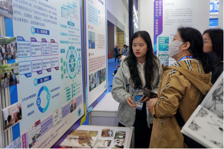 此次教博会展览中,我院项目展板吸引不少观众驻足阅览,向全国各地观众展示教科院教育创新成果,教科学子深耕研学教育沃土,积极开拓创新的良好风貌。