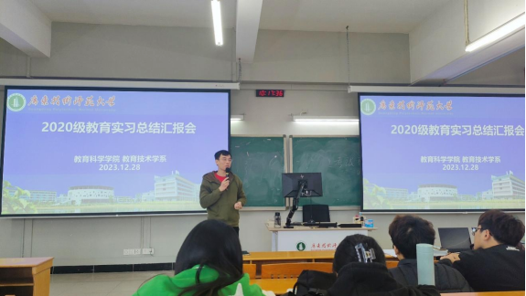 为帮助2020级教育技术学专业学生回顾总结教育实习收获,推进教育研习与毕业设计(论文)工作进展,促进专业发展,2023年12月28日,金年会教育技术学系在白云校区三教314召开2020级教育实习总结汇报会、教育研习推进大会与毕业设计(论文)推进大会,教育技术学专业骨干教师赵玉、周元春、梁乐明、黄石华、王孝金以及教育技术学专业2020级和2021级全体学生参加了会议。教育技术学系主任赵玉老师主持本次会议。