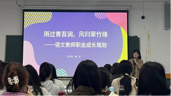 报告会上,林洁老师从四个方面讲述了如何当一名优秀的语文教师,一是当语文老师的体验;二是语文老师的“必杀技”;三是如何规划职业生涯;四是大学期间的准备。林洁老师分享了自己在语文教学方面的丰富经验,充分援引语文课堂优秀案例,围绕“当语文老师是一种什么样的体验”,提出语文老师要“既能当i人,也能当e人”等。同时,她认为“语文老师是多种角色的综合体”,要“先提升专业能力,再提升德育能力”。报告中,林老师亲切生动、妙语连珠,有趣又深刻的观点使同学们受益匪浅。