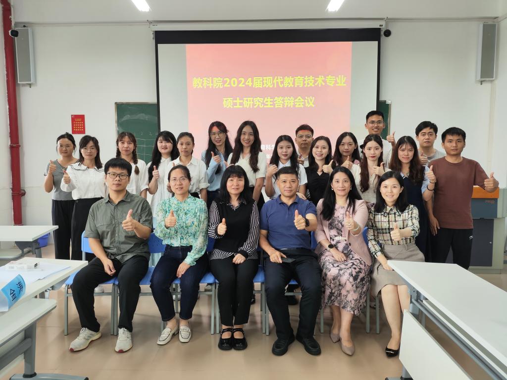 时光荏苒,岁月如梭。金年会于5月27日至28日分别在白云校区和东校区顺利举行了2024届硕士研究生毕业论文答辩工作。此次答辩共分为七个小组,共有91名研究生参与答辩,涵盖了教育学、学前教育、现代教育技术、教育管理及职业技术教育(信息技术)5个专业领域。答辩委员会由校外专家和校内专家共同组成,其中校外专家共有12位,他们分别是华南师范大学的张广君教授、谢少华教授、吴宏超教授、穆肃教授以及刘志文教授,广州大学的杜玉霞教授和刘晖教授,顺德梁球琚学校尧勇校长、东莞横沥中学肖春琳老师、河源机关幼儿园廖琳静园长、广师大附属幼儿园黄丽红园长、深圳龙华区信息科技教研员周莉萍老师。学院对本次答辩工作给予了高度重视,提前制定了周密的答辩实施方案,详细规定了答辩的要求、操作流程和人员安排,确保答辩工作能够有序、高效地进行。答辩期间,其他研究生也积极参与旁听。