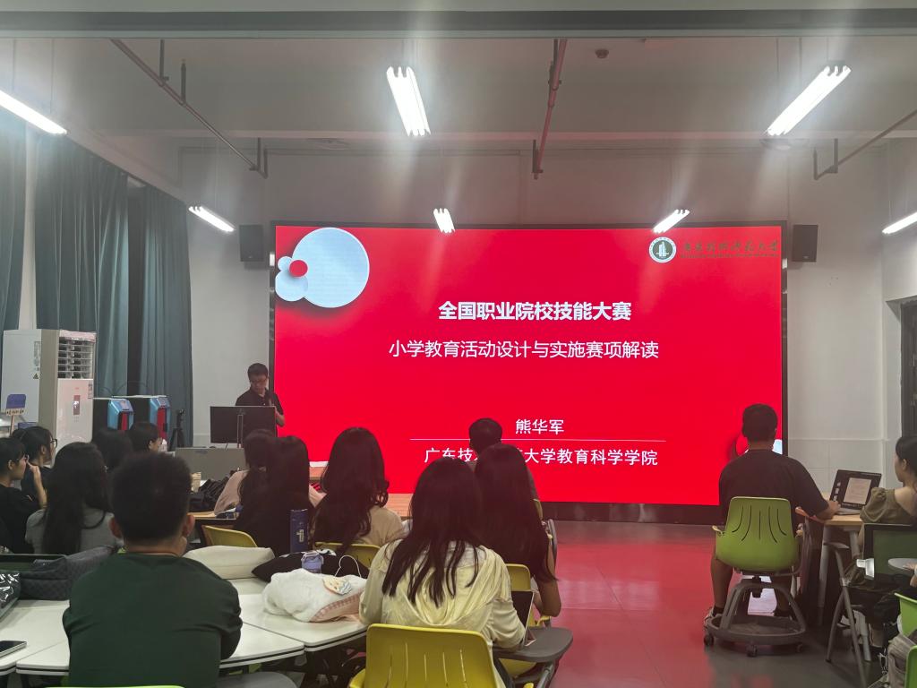 一是竞赛规程。熊华军院长详细地为学生介绍了全国职业院校技能大赛的流程与规则,明确了比赛的宗旨,以此来使学生们能够进一步了解全国性教学技能大赛的大致流程,为“田家炳杯”全日制教育硕士专业学位研究生教学技能大赛做准备;二是赛项分析。熊华军院长对初赛、复赛和决赛的不同要求进行了说明,并指出短时间内设计出一份好的教学方案是困难的,这需要参赛者私下不断的练习。因此,学生都应该严格要求自己,从现在开始锻炼自己的能力;三是赛项亮点。比赛项目涵盖了多个学科和领域,确保了比赛的广泛性和全面性。熊华军院长强调参赛者可以将自己的兴趣特长融入到教学设计中,充分展示自己的优势,形成独特的教学风格;四是案例剖析。本次学术会议,熊华军院长为了帮助学生更深入地理解比赛项目,特意准备了优秀的案例作品进行展示。这些作品广泛的覆盖了教育活动设计与实施的各个领域,从教学理念、内容设计到实施策略,每一份作品都凝聚了参赛选手的创新思维与专业素养,为我院学生对之后的教学设计提供了新思路。