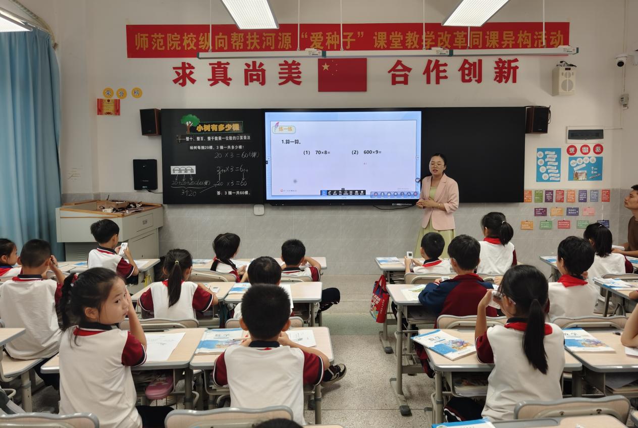为锚定“全面提高县域基础教育发展水平,服务实施‘百县千镇万村高质量发展工程’”总体目标,深入推进师范院校纵向支持欠发达地区“三所学校”和县中质量提升八项重点任务落地并取得成效,着力提升我校帮扶河源市试点学校数字化赋能课堂教学改革能力,我校联合河源市教育局共同推进数字化赋能课堂教学改革,计划以“请进来”“走出去”“亮出来”的方式开展系列活动,通过开展各级各类活动与评比促进课改走深走实,推动河源市各县区课堂教学改革一盘棋,积极探索数字化转型背景下新型城镇化建设的教育崛起之路。