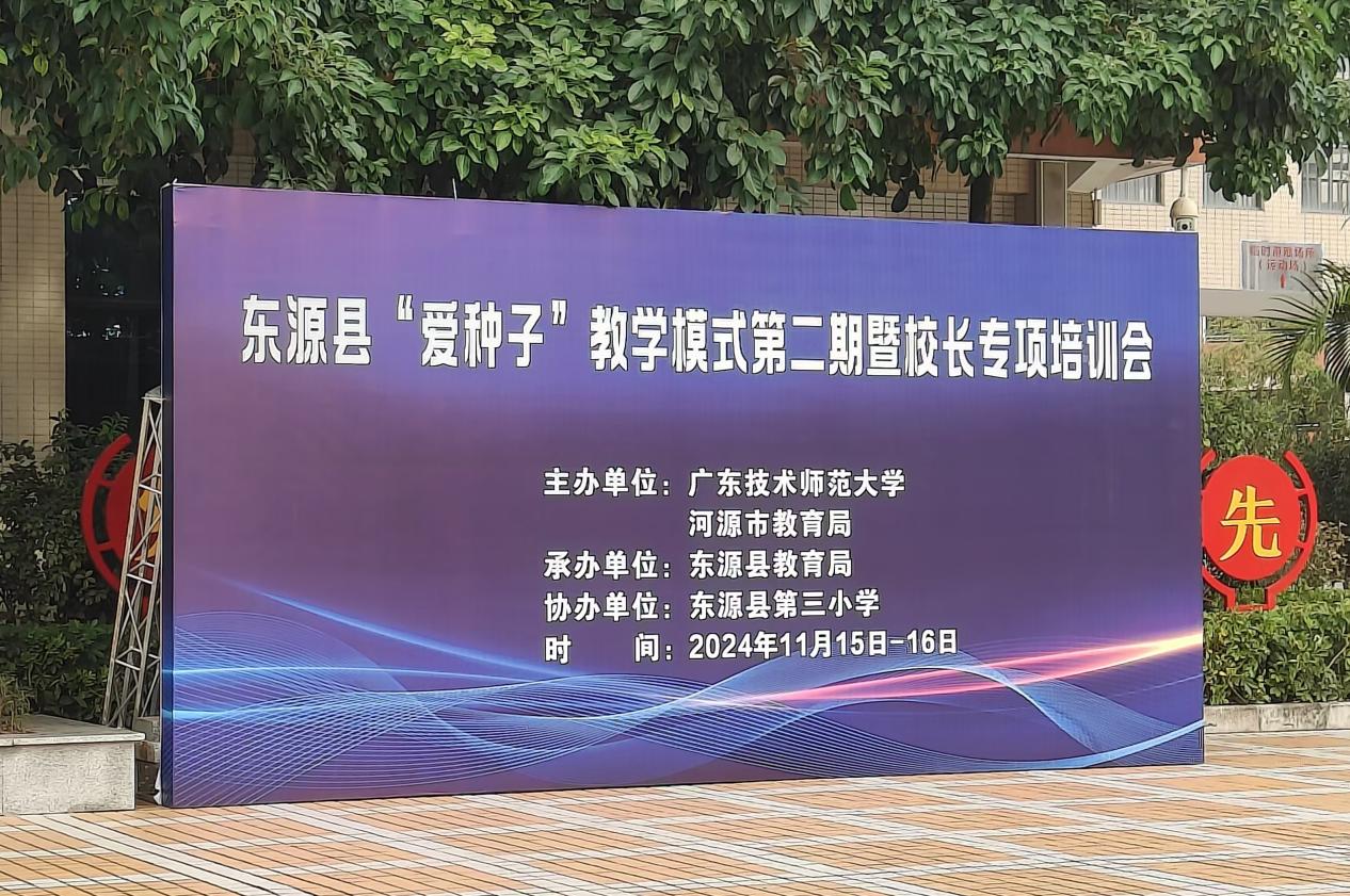 为落实好省百千万指挥部办公室《关于开展首批以县城为重要载体的新型城镇化试点的通知》要求,进一步推进师范院校纵向帮扶河源市“三所学校”和县中质量提升有关工作,提升东源县中小学校数字化赋能课堂教学改革能力,11月15至16日,我校联合河源市教育局在东源县第三小学举办“爱种子”教学模式第二期暨校长专项培训,金年会组织实施了本次培训,来自东源县12 所实验学校校长、分管教学副校长、骨干教师、教研员共计120余人参加了培训。
