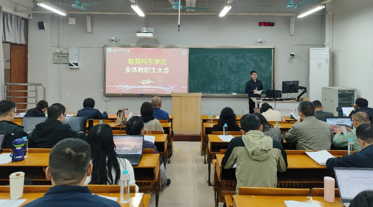 2月21日上午,金年会在东校区第二教学楼205教室召开2025年全院教职工大会。会议由熊华军院长主持,全院教职工参加了会议。