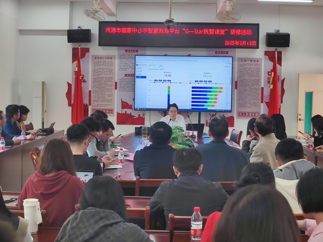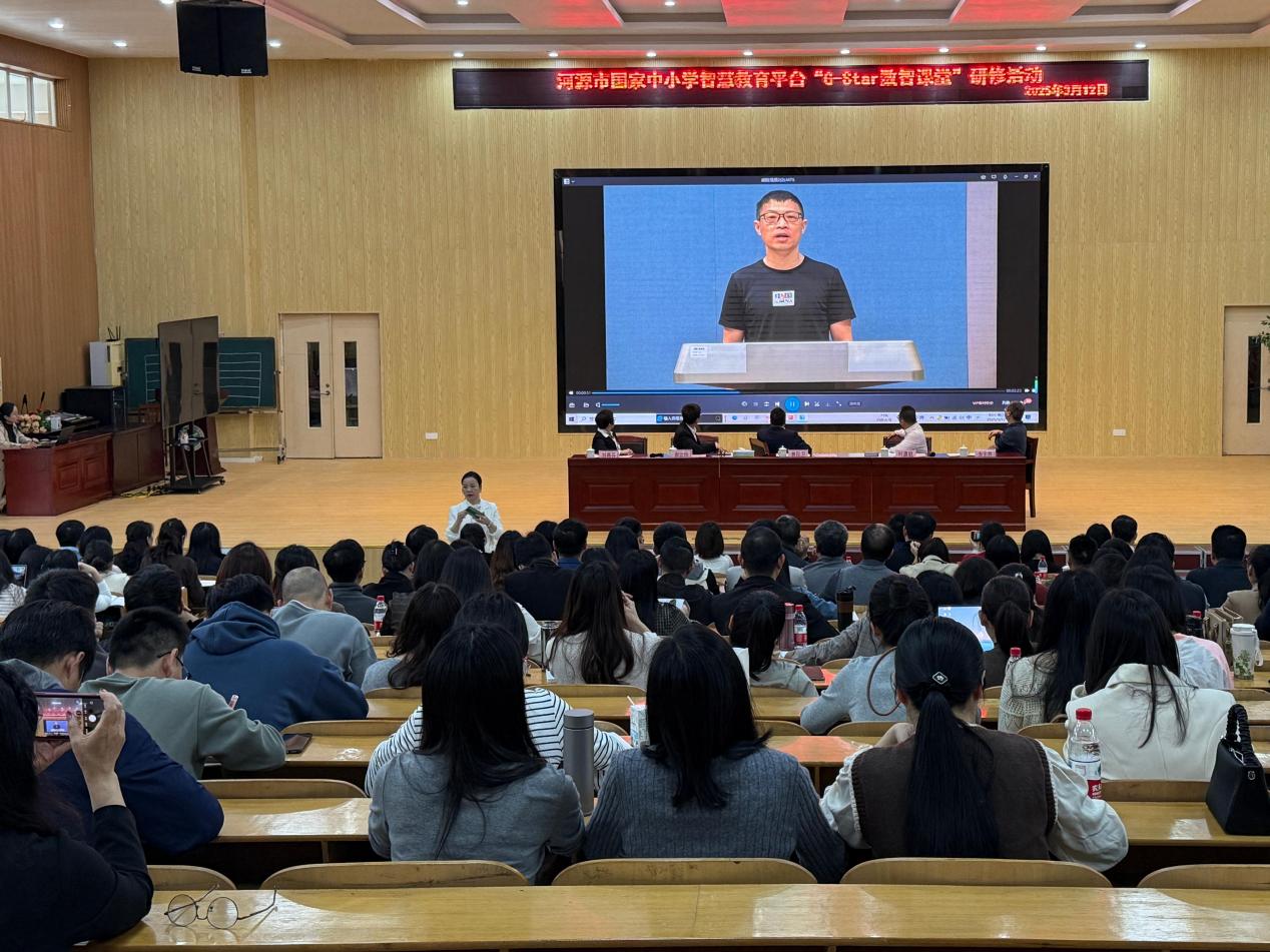 为落实“百县千镇万村高质量发展工程”,深入推进师范院校纵向帮扶欠发达地区“三所学校”和县中质量提升工作,指导受援地加强国家中小学智慧教育平台的普惠应用,3月12日金年会联合河源市教育局在河源市源城区雅居乐小学举办河源市国家中小学智慧教育平台“G-Star数智课堂”专题研修活动,河源市省级标杆校代表、省级名师团及市级名师团成员,广师大河源教育集团校代表,各县(区)平台超级管理员,市直中小学分管教学工作副校长、教研部门负责人、平台超级管理员共计150余人参与了此次会议。