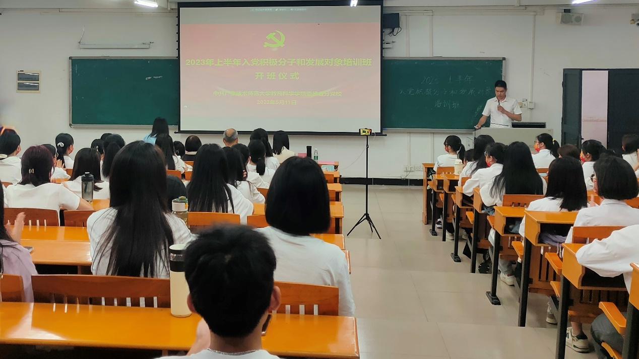 学院党委副书记吴水爱对参加本次培训班的全体学员表示祝贺,并对参加培训的同学们提出三点要求:一是珍惜学习机会,通过学习党的基本理论提升自身素养,严肃对待此次考核培训;二是端正入党动机,在思想上及行动上要进一步向党组织靠拢,展现教科学子良好风貌;三是严格遵守纪律,勤奋努力,做好先锋模范作用。她希望全体学员通过学习培训深刻领会党的思想,学习党的光辉历史,进一步提升个人综合素质,增强政治素养,以实际行动践行对党忠诚,把主题教育落到实处,在培训班学有所获。