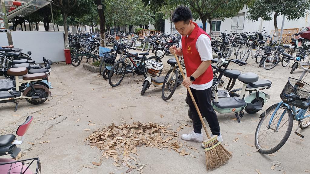 活动现场,大家齐心协力,分工明确,配合默契,对第二教学楼周边片区的花基杂草杂物清理清除,并将电动车、自行车等摆放整齐,展示出了极高的工作效率,大家争做绿水青山的守护者、生态文明的践行者,展现了学院青春风采。